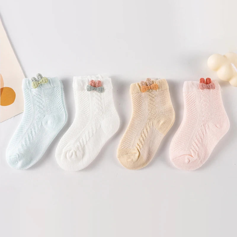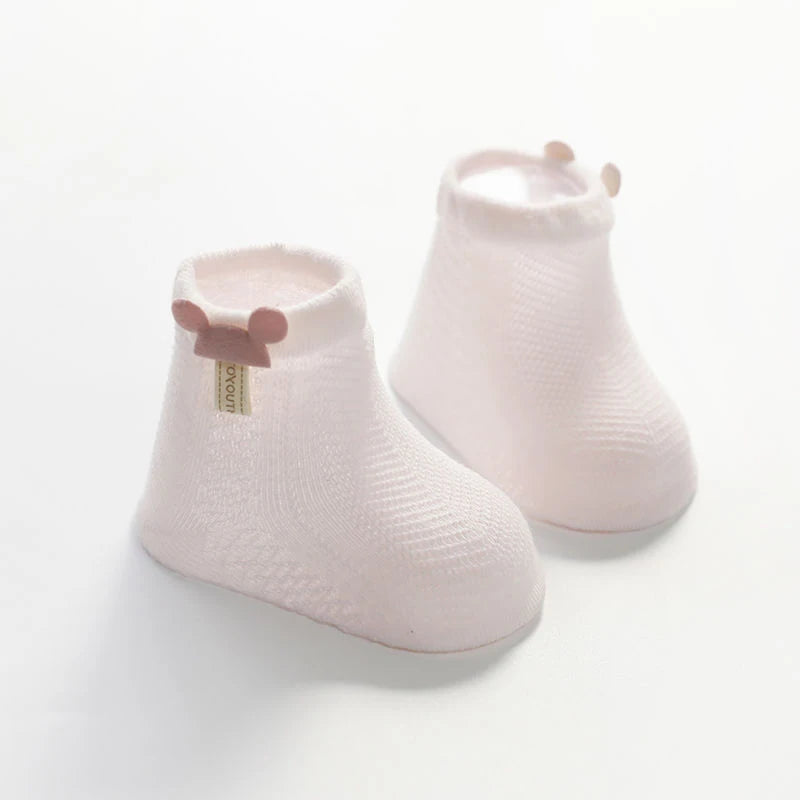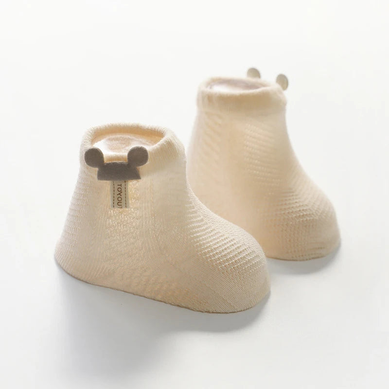 Ces chaussettes pour bébé sont fabriquées en coton peigné de haute qualité, reconnu pour sa douceur et sa capacité à laisser respirer la peau.