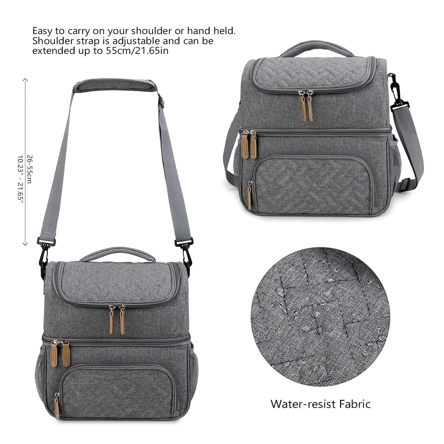 Fabriqué à partir de matériau isolant (type aluminium), ce sac à langer est à la fois résistant et léger, offrant une robustesse idéale pour les sorties avec bébé tout en restant facile à transporter. Sa conception souple et durable assure qu'il conserve son élégance et sa fonctionnalité après chaque utilisation.